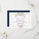 Design de Buquê de Rosas Brancas e Rosadas Único e Elegante. Apresenta lindos buquês de rosas brancas e rosadas em aquarela, uma moldura dourada falsa, em um fundo branco. No verso: um fundo azul naval rico e setas com corações, flores, iniciais dos noivos. Adicione suas informações. Para itens correspondentes, visite minha Coleção de Rosas Brancas Douradas.