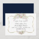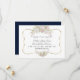 Design de buquê de rosas rosa e branco único e elegante. Apresenta lindos buquês de rosas brancas e rosadas em aquarela, uma moldura de ouro falso, em um fundo branco. No verso: um rico fundo azul-marinho e flechas com corações, flores, iniciais dos noivos. Adicione suas informações. Para itens correspondentes, visite minha Coleção de Rosas Brancas com Ouro.