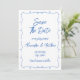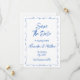 Nossa placa Save the Date apresenta um charmoso quadro desenhado à mão e um tipo de letra com na moda, tudo em um design azul e branco de cobalto minimalista. Adicione um toque de capricho ao seu evento com este cartão delicioso que exude elegância e charme. Perfeito para capturar a essência de sua celebração com uma reviravolta moderna. Eleve seu anúncio Salvar a data com este design exclusivo e divertido que deixará seus convidados admirados. Peça o seu hoje para uma ocasião memorável!