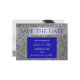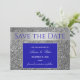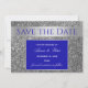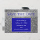 Luxuoso, chique, convite de casamento prata brilhante e azul real para salvar a data com foto e caligrafia moderna.