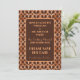 Faça uma viagem de volta ao rancho da década de 1970 com este padrão marrom e laranja salve o cartão de data. Para editar o texto, clique no botão personalizar. Este design contém IA.