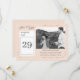 Design apresenta as palavras "Salvar a Data" em uma fonte elegante, prateada, à esquerda de design. Logo abaixo da imagem de um calendário diário com sua data de casamento está claramente visível. Sua foto é apresentada como a imagem principal à direita do calendário. O dia e a data do casamento, os nomes do casal e da cidade da cerimônia aparecem logo abaixo da foto contra uma cobertura cor-de-rosa champanhe. O reverso apresenta um simples florescimento no centro. Muito elegante. Projetado para coordenar com a coleção "Bastante Católica" da Suite de Casamento. Também disponível em branco.