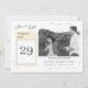 Design apresenta as palavras "Salvar a Data" em uma fonte elegante, prateada, à esquerda de design. Logo abaixo da imagem de um calendário diário com sua data de casamento está claramente visível. Sua foto é apresentada como a imagem principal à direita do calendário. O dia e a data do casamento, os nomes do casal e da cidade da cerimônia aparecem logo abaixo da foto contra um backing branco. O reverso apresenta um simples florescimento no centro. Muito elegante. Projetado para coordenar com a coleção "Bastante Católica" da Suite de Casamento.
