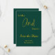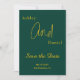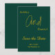 Este elegante casamento verde e dourado, salvar a data é perfeito para um casamento moderno. o simples design apresenta uma elegante caligrafia dourada num fundo verde.