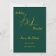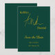 Este elegante casamento verde e dourado, salvar a data é perfeito para um casamento moderno. o simples design apresenta uma elegante caligrafia dourada num fundo verde.