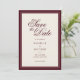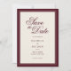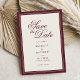 Crie seus próprios cartões de save the date de casamento personalizados com uma estética vintage clássica de old money. Adicione seus detalhes personalizados para o seu dia de casamento em tipografia elegante e atemporal apresentada aqui em design de cores burgundy e creme.