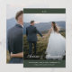 Este anúncio de casamento em verde floresta com duas fotos, de estilo clássico e elegante, apresenta um monograma sofisticado e design minimalista com tipografia clássica e letra de caligrafia bonita. Compre esta linda coleção de casamento para convites de casamento coordenados e opções de cores modernas adicionais.