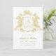 COR DE QUADRO E TEXTO ALTERÁVEL | Casamento elegante com crista floral de ouro vintage salve o cartão de data — perfeito para um casamento vintage clássico ou romântico moderno. Para uma personalização mais avançada deste design, clique no BOTÃO DE FERRAMENTAS DESIGN acima!
