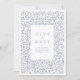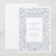 Elegante design de borda de quadros ornamentais antigos com fonte sofisticada de serifa em cor azul empoeirada, cartões salve a data simples e clássicos de excelente para casamento clássico moderno, casamento vintage romântico e casamento tradicional formal.