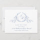 Reserve A Data Casamento Clássico de Monograma Azul Elegante