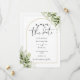 Este convite elegante de salvar a data com folhas de verde botânico e arco dourado pode ser personalizado com suas informações em tipografia chic com o código QR do site do seu casamento e detalhes no verso. Projetado por Thisisnotme©