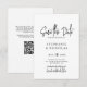 Cartão de Save The Date de código QR de letra minimalista elegante preto e branco. Este design delicado é perfeito para casamento moderno. Caracteriza fonte de caligrafia manuscrita caprichosa ou letra de caligrafia ou tipografia e um código QR que leva ao site do seu casamento. Fácil de personalizar com os detalhes do seu casamento.