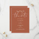 Este convite de save-the-date em terracota elegante pode ser personalizado com suas informações em tipografia sofisticada com o código QR do site do seu casamento e detalhes no verso. Criado por Thisisnotme©