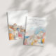 Um casamento mediterrânico colorido e moderno Salve a data com uma bela colmeia d'água e paisagem costeira em rosa, azul e laranja, tanto na frente quanto no verso.