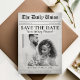 Casamento legal de artigo de jornal salve a data. Personalize-o com os detalhes do evento e uma fotografia da noiva e do noivo.