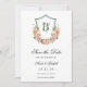 Este lindo cartão de Save the Date de casamento com brasão floral de pêssego e as iniciais dos noivos seria perfeito para o seu casamento. A redação é tradicional, mas moderna, e as fontes são requintadas. As peônias rosa, rosas, flores silvestres, lírios do vale e folhagens esvoaçantes são românticas e elegantes.