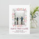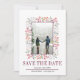 Berries e saímos da fronteira do casamento com ladrão de inverno Salve o anúncio da data. A frente deste adorável anúncio apresenta um quadro feito de bagas e folhas, o texto "Salvar a Data" em burgundy e sua foto. A parte de trás é de cor sólida e farinhenta.