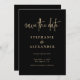 Casamento com Código QR Preto do Script Dourado Moderno. Simplicidade moderna com este design de texto elegante. Com um script na moda set para Salvar a Data e personalizar facilmente o resto do texto. As cores da fonte podem ser alteradas através do menu de edição. Você também pode alterar as cores de fundo em ambos os lados, se desejar. Um código QR está no verso para a conveniência dos seus convidados de se manter atualizado com os seus planos. Basta alterar o URL de exemplo e o seu será gerado automaticamente.