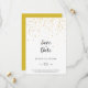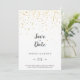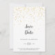 Este cartão de salvar a data de casamento com confete dourado é perfeito para um casamento simples e sofisticado. O design caprichoso e elegante apresenta confete glitter dourado falso e caligrafia minimalista com um toque moderno boho.