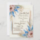 Este casamento, salvar o cartão de data, apresenta um design estonteante e vibrante com flores de grama de olhos azuis como o elemento principal. O cartão apresenta disposições florais exuberantes nos cantos superior esquerdo e inferior direito, combinando peões cor-de-rosa macio e flores brancas delicadas com flores de grama azuis marcantes. As flores são lindamente acentuadas com folhagem verde e detalhes finos de ouro, criando uma composição harmoniosa e elegante. O estilo artístico combina aquarela e ilustração botânica moderna, oferecendo um aspecto fresco e sofisticado perfeito para uma celebração romântica e contemporânea de casamento. Personalize o texto relativo aos nomes e detalhes do casamento. Você pode baixar a placa para seu dispositivo móvel ou computador. Eu desenhei o cartão com tecnologia ai.