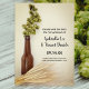 Anuncie sua próxima cerimônia de casamento de cerveja, fôrma de artesanato ou microfone, com os charmosos Saltos Secos e Casamento de Cervejaria de Trigo Salve os Anúncios de Data. Este casamento costume rústico mantém os cartões de data com uma fotografia escura de uma garrafa de cerveja de vidro castanho cheia de salto verde seca ao lado do trigo seco e de um véu branco.