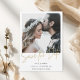 Crie uma primeira impressão glamourosa com o nosso Casamento com Foto e Caligrafia a Ouro Moderna para Salvar a Data. Este design equilibra perfeitamente o minimalismo contemporâneo com um toque de luxo, apresentando sua foto de noivado favorita sobreposta com uma elegante escrita à mão em ouro. (efeito impresso em cor dourada) É uma maneira sofisticada e elegante de anunciar a data aos amigos e familiares.