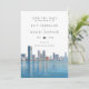 Este convite de casamento em aquarela da silhueta de Miami pode ser personalizado com suas informações em tipografia moderna e foto especial no verso. Criado por Thisisnotme©