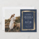 A Foto Dourada Pintada de Casamento de Quadros Salva as Datas é um design elegante, moderno, com falso quadro de pincelada de folha de alumínio e texto editável clássico e foto vertical. Clique no botão Editar para personalizar este design com sua foto pessoal e detalhes.