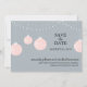 Lanternas coloridas em papel em uma série de luzes define o tom divertido para salvar as datas. Perfeito para casamentos de Primavera ou Verão. A cor dos Lanternas é um rosa-sujo claro com fundo de Cinza de Prata. String de luzes brancas pendurada acima. Para obter informações sobre alterações de design personalizadas pelo designer independente, envie um email para paula@labellarue.com ANTES de personalizar ou fazer um pedido.