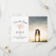 Peça aos seus convidados para salvar sua data de casamento com este design simples e elegante que apresenta sua foto, roteiro moderno, texto de cinza de carvão e uma palmeira artística de cobre rosa dourado. Um fundo de mármore branco e cinza está na parte de trás do cartão. Personalize-o com sua foto, data do casamento, nomes e localização.