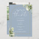 Este elegante verde botânico azul empoeirado deixa arco dourado, exceto que o convite de data pode ser personalizado com suas informações em tipografia chica com sua foto especial e seu site de casamento QR code e detalhes no verso. Projetado por Thisnotme©