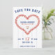 Casamento de beisebol branco e azul / softball salvará a data com pinstripes e pontos cardíacos. Personalize-o com os detalhes do evento. Excelente para fãs esportivos.