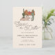 Convite de casamento personalizado boho deserto save the date com uma ilustração moderna da paisagem do deserto com pôr do sol e cacto, fonte de letra moderna para Salve a Data e modelo de texto totalmente personalizável para os nomes do casal e as informações do casamento. Lindo padrão desértico correspondente no verso em um fundo de terracota marrom quente.