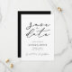 Anuncie seu dia especial com elegância usando nossos cartões de "Save the Date" de casamento com Script Moderno Minimalista. Esses cartões elegantes e sofisticados apresentam um design minimalista que combina estilo contemporâneo com charme atemporal. Criados em papel de alta qualidade, cada cartão apresenta um layout limpo com fonte de letra moderna, garantindo que seu anúncio seja claro e elegante.