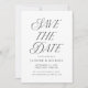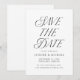 Na moda, cartões salve a data de casamento elegantes com "Salvar a Data", mostrados em um estilo preto moderno de tipografia: uma combinação de caligrafia e letra serif. Personalize o cartão de identidade preto-e-branco com seus nomes, data e local do casamento, site do casamento, etc.
