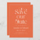 Na moda e elegante guardem o cartão de data com texto tipográfico que diz "salve nossa data" em cor laranja queimada. Você pode adicionar uma foto atrás.