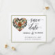 Este cartão Save the Date apresenta um estilo norueguês Rosemaling design Folk Art Heart e a inscrição manual Cursiva que diz "Save our Date". Você pode editar o texto para ajustado das necessidades do seu evento. As cores incluem vermelho, azul, verde e amarelo ouro.