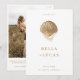 Defina o tom para seu casamento na praia com este elegante Cartão Salvar a Data com uma concha de ouro, pérolas moles e um código de QR moderno. Perfeito para comemorações costeiras, casamentos de destino, ou espaços na frente dos oceanos. Personalize com seus detalhes para uma primeira impressão na moda.