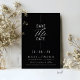 Este elegante e simples casamento moderno preto e branco salve a data com um querido cristão "We Love, porque Ele primeiro nos amou - 1 John 4:19" verso bíblia sobre sua foto favorita do noivado cobrir e um minimalista elegante salve a data detalhes do casamento e design no verso incluindo seu site de casamento em branco sobre um sólido fundo negro é a maneira perfeita de anunciar seu grande dia! Personalize facilmente o texto e carregue sua foto para torná-lo exclusivamente seu! Você pode até mesmo editar / ajustar a posição dos componentes do design, clicando no botão azul "Editar usando a ferramenta design" na parte inferior da janela "Personalizar este Modelo", navegue até a guia "camadas" na coluna esquerda da tela de edição, selecione a camada frontal ou traseira, clique no elemento que você gostaria de mudar com a caixa de ferramentas à direita e clique no botão "concluído" quando concluído o design personalizado e/ou cor as solicitações e perguntas modelo são sempre bem-vindas - clique no botão "mensagem" ou email: figandlilyco@gmail.com. A design é carinhosamente criada pela Fig e Lily Studios - mandando bênçãos e obrigados por estarem aqui conosco! (Crédito da foto do noivado/casamento da nossa linda filha: @laurenmargaretphotoographic)