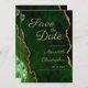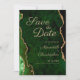 Elegante salve o cartão de data com a emerald green marble agate com casamento dourado, salve o cartão de data.