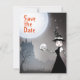 Este Anúncio de Save the Date personalizado apresenta um charmoso casal de bruxa e crânio. Um anúncio encantador para qualquer casamento e uma escolha perfeita para o feriado de Halloween. *