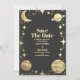 Reserve A Data Casamento da Lua do Crescente Negro Dourado Celest