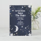 Este elegante cartão salva-vidas captura a beleza encantadora de um casamento de temas celestes, com um sofisticado design da lua crescente como seu ponto focal. A lua crescente, delicadamente enfeitada com detalhes de folha de ouro, repousa sobre um fundo azul ou marinho profundo, evocando o sereno e o fascínio místico de uma noite estrelada. Ao redor da lua estão misturando estrelas de ouro, criando um senso de maravilha e romance. O texto do cartão, incluindo os nomes dos casais e a data do casamento, é lindamente escrito em uma combinação de caligrafia moderna e fontes clássicas de serifa. O texto é gravado em folha de ouro, perfeitamente harmonizado com o tema celeste e acrescentando um toque luxuoso. A mensagem salvar a data é exibida de forma destacada, convidando convidados a marcar seus calendários para a próxima comemoração. O cartão inclui também uma nota sutil indicando que se seguirá um convite formal, assegurando que os convidados sejam informados dos pormenores importantes. Impresso em estoque de cartão texturizado de alta qualidade, esta placa salva-a-data tem um sentimento rico e táctil que aumenta sua elegância. A parte de trás da placa apresenta uma continuação do padrão do céu estrelado ou uma simples cor sólida que complementa o design frontal, amarrando a peça inteira. Esse cartão guardado é ideal para casais que querem dar tom mágico ao seu casamento, com um design que reflete o tema celeste e deixa uma impressão duradoura de elegância e charme.