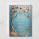 Este cartão de casamento apresenta um design impressionante com um quadro de ouro interligado com um galho de árvore lindamente trabalhado, adornado com folhas de ouro e maçãs vermelhas vibrantes. O fundo faz a transição do azul claro no topo para um azul ligeiramente mais escuro no fundo, criando uma configuração tranquila e elegante. O estilo artístico funde o minimalismo moderno com influências de Art Nouveau, caracterizado por suas curvas graciosas e formas orgânicas. Os motivos detalhados do galho e das folhas, combinados com as corajosas maçãs vermelhas, evocam uma sensação de beleza natural e romance eterno, fazer que esta carta seja a escolha perfeita para um casamento. Personalize o texto. Você pode baixar a placa para seu dispositivo móvel ou computador. Eu desenhei o cartão com a ajuda de um ar generativo.
