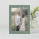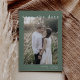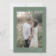 Este casamento da natureza do sábio simples, com a foto rustic, salvo o cartão de data é perfeito para um casamento de destino de madeira. O design verde-sábio escuro apresenta uma tipografia simples e rústica com uma sensação de montanha de floresta. Personalize suas datas com uma foto de noivado, seus nomes e sua data de casamento. Adicione seu site de casamento à parte de trás do cartão.