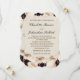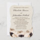 Bonito anêmono branco nos convites para casamento com temas de canvas. Os nomes da noiva e do noivo estão em um roteiro preto. O resto do texto é marrom. Estes convites são muito chicos, femininos, e elegantes, eles vão criar uma impressão duradoura nos seus convidados.
