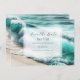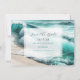 Casamento personalizado com temas costeiros Guarde os cartões de data. Bonito ondas de turquesa oceânica caindo em uma praia arenosa. Fonte elegante.