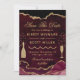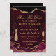 Moderno Borgonha Vermelho e Dourado Faux Glitter Agate e Marble design com garrafa de champanhe dourada e amante de diamante de vidro