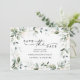 Este design elegante apresenta um delicado buquê de aquarela de eucalipto, folhagens e enfeites dourados. Clique em Personalizar e no botão "Clique para personalizar ainda mais" para editar a cor da escrita do texto. Adicione uma foto ao verso!