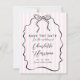 Um simples guião manuscrito moderno com arco, casamento de rabiscos salva o anúncio da data. Para um estilo simples, minimalista, casual, divertido, de papelaria de casamento. Tipografia preta em pínstripes cor-de-rosa pálido. Um relaxado estilo de rabiscar casual, inclinado-se um pouco em direção a um belo estilo romântico parisiense whimsicalcore com uma vibração desenhada à mão.